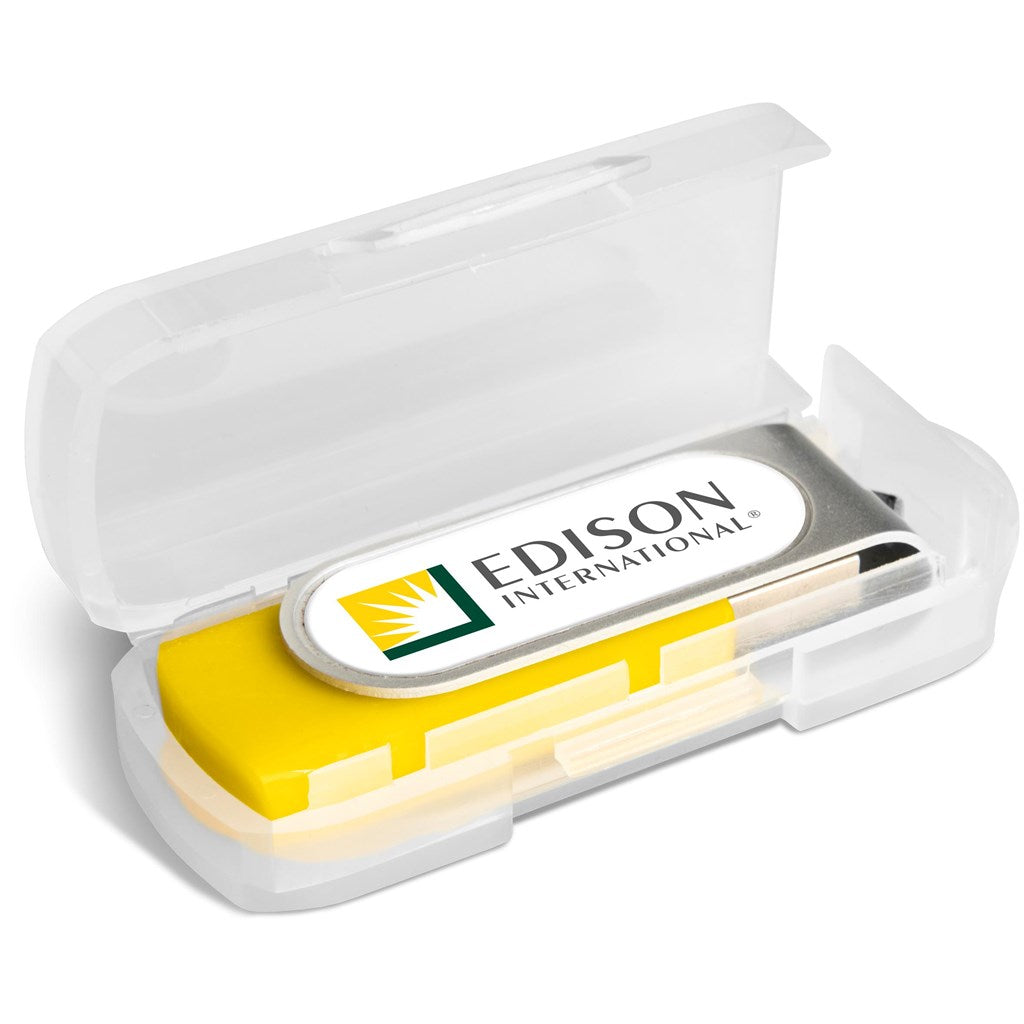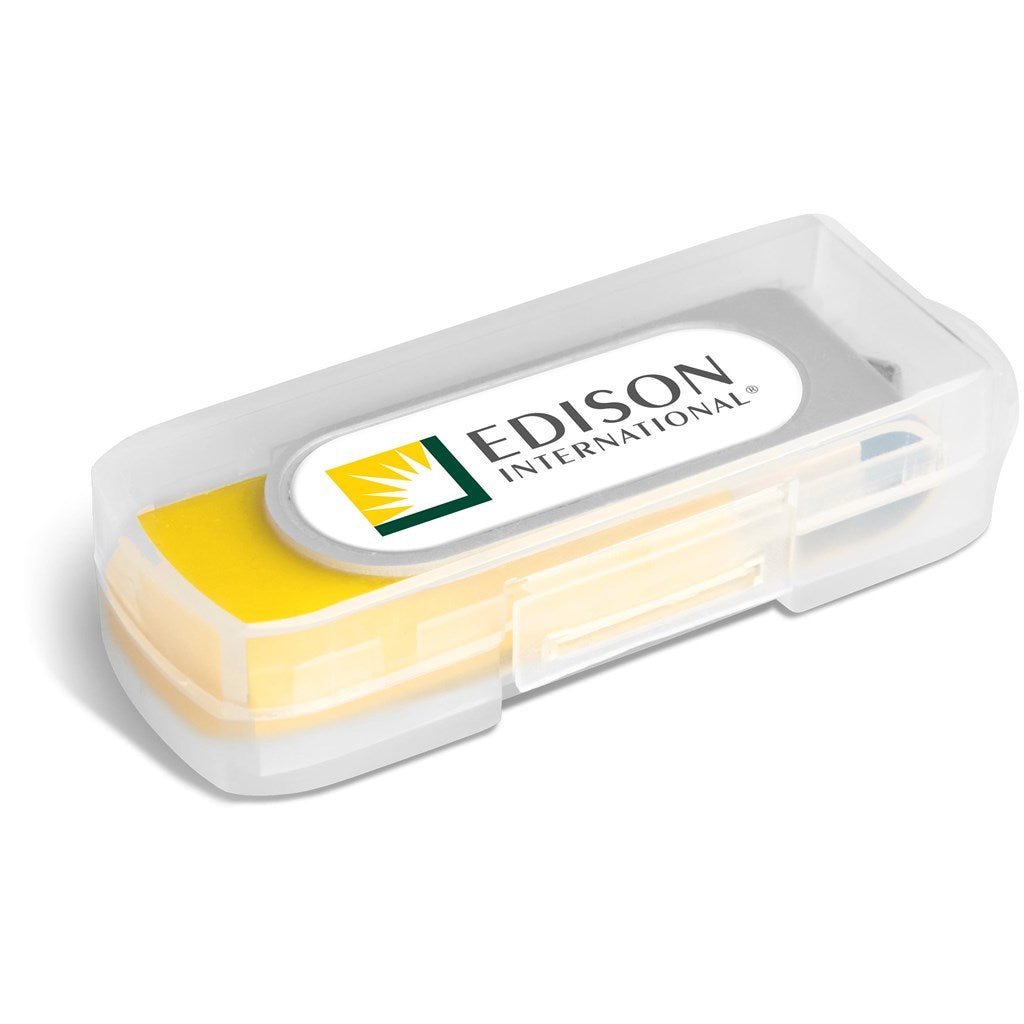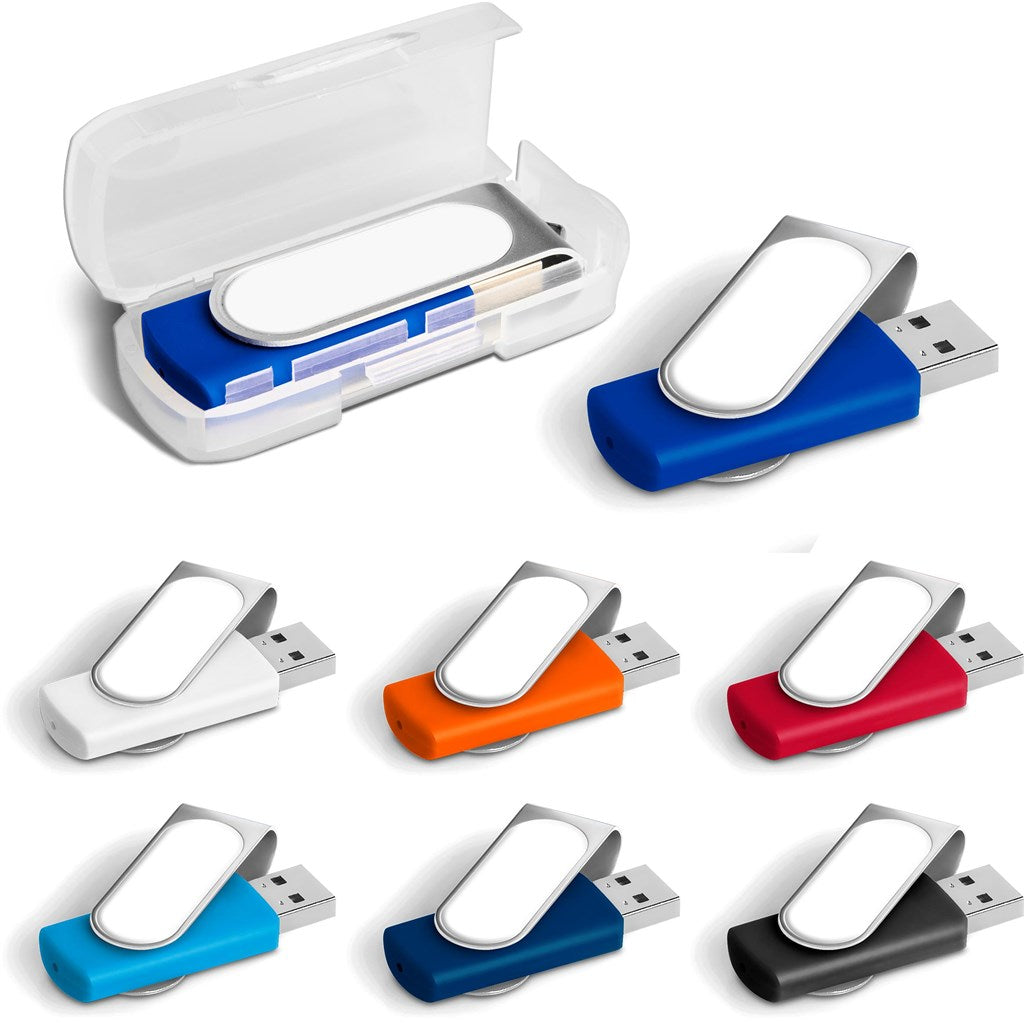 classic flash drive with a soft-touch, lacquered base. The metal swivel is designed for vibrant, full-colour dome sticker branding which fits snugly into the recess. It has 16gb of memory, with a §§usb§§ 2.0 interface. Presented in a transparent case.