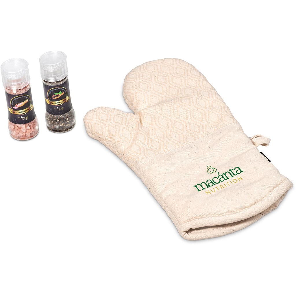An Experienced and well-known spice company in South Africa, ‘The Cheff’ has created a perfect blend of herbs and spices to excite and delight your taste buds. Team these spices with our natural cotton Tanoreen Oven Glove presented in a natural box with filler to create a perfect cooking gift.