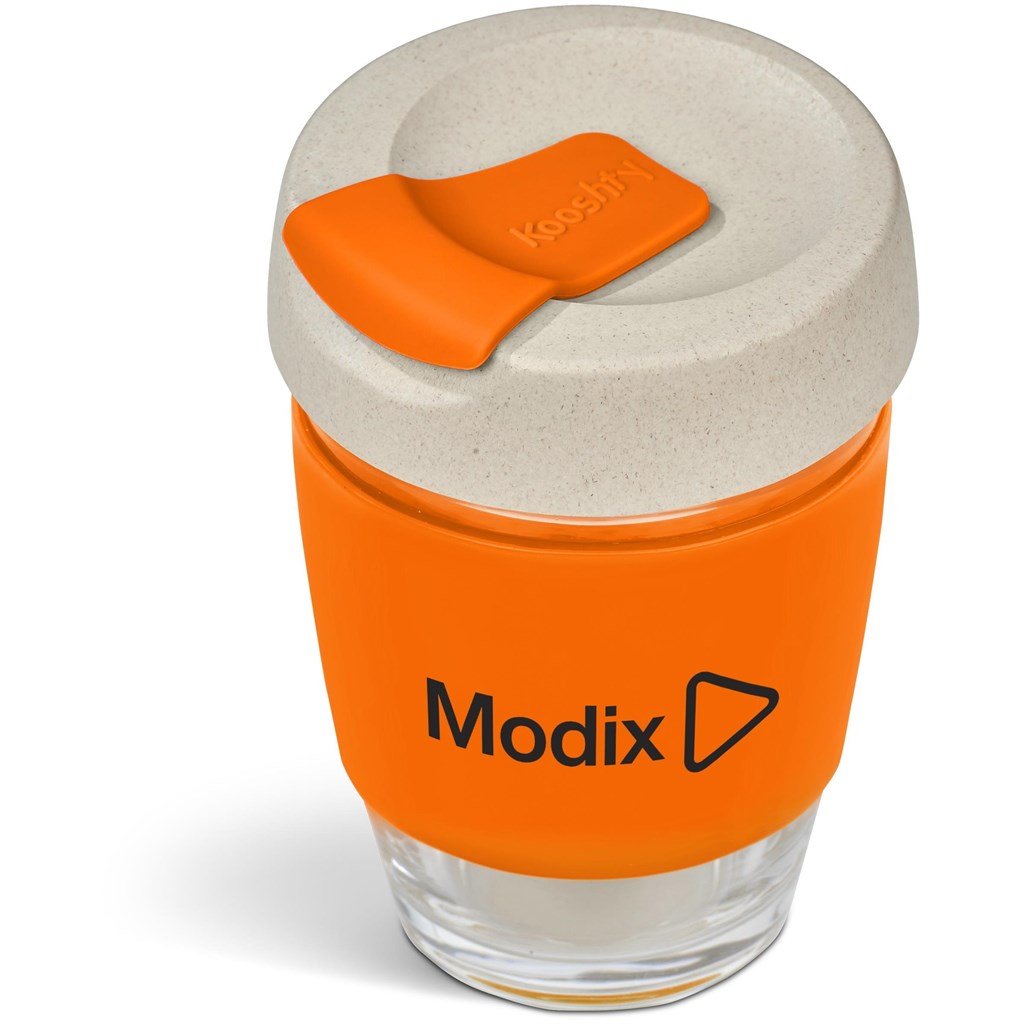 a reusable alternative to disposable coffee cups. The cup is made from tough and strong borosilicate glass. The band is made from silicone to insulate the hand from the heat of the beverage inside. The lid is made from plastic mixed with wheat straw. Wheat straw is the stalk left over after wheat grains are harvested. Traditionally it has been treated as waste, but now it can be used in combination with traditional plastic. This reduces the quantity of plastic needed to produce an item and accelerates its biodegradability once it is eventually disposed of.