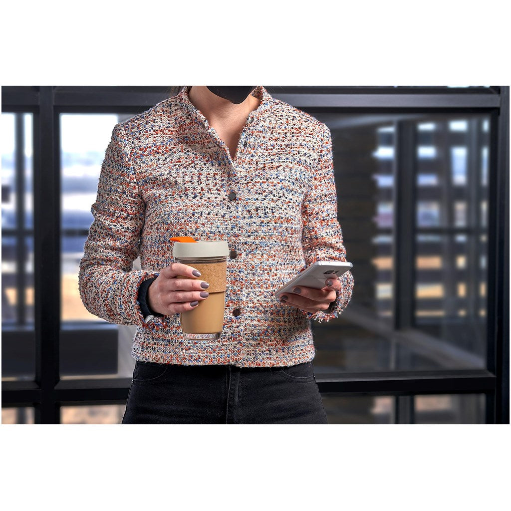 Say no to those single use coffee cups by opting for this reusable 480ml glass coffee tumbler, which has an insulating cork band and a comfortable sipping lid made from sustainable wheat straw material with a silicone cap.