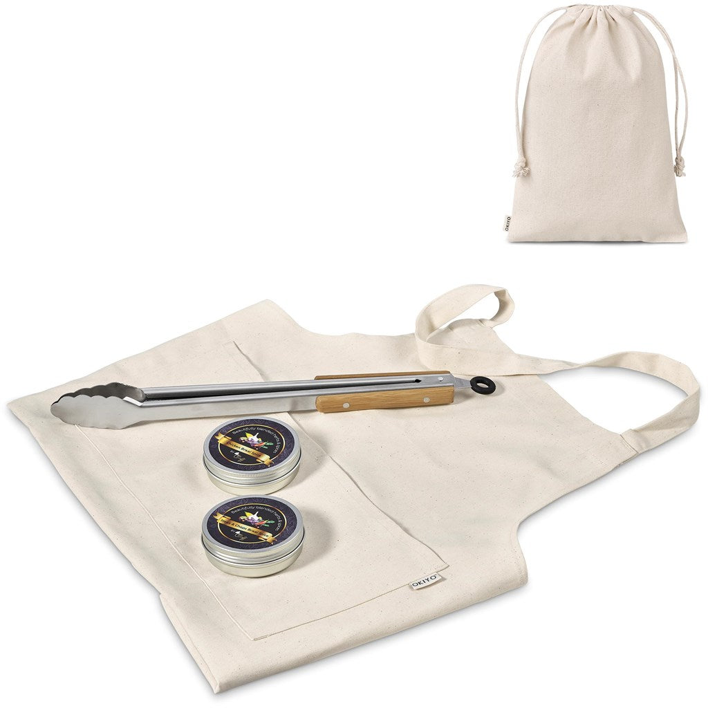 An Experienced and well-known spice company in South Africa, ‘The Cheff’ has created a perfect blend of herbs and spices to excite and delight your taste buds. Add to chicken or meat, to bring out an authentic South African braai flavour. Team these spices with our natural cotton Gohan apron and Braai Tongs presented in a natural cotton pouch to create a perfect braai master gift.