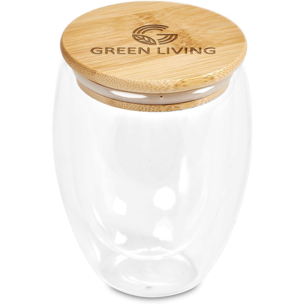 the combination of clean glass and sustainable bamboo gives the okiyo moco cups an alluring look and feel. The double-walled glass keeps your drink hotter for longer and prevents the heat from contacting your hands as you sip your coffee or tea. The bamboo lid also does its part to keep the heat in and prevents spillage.